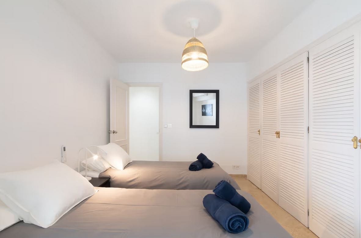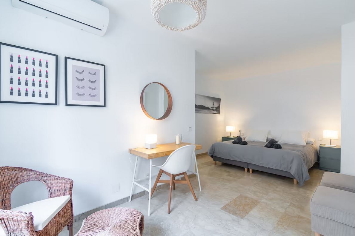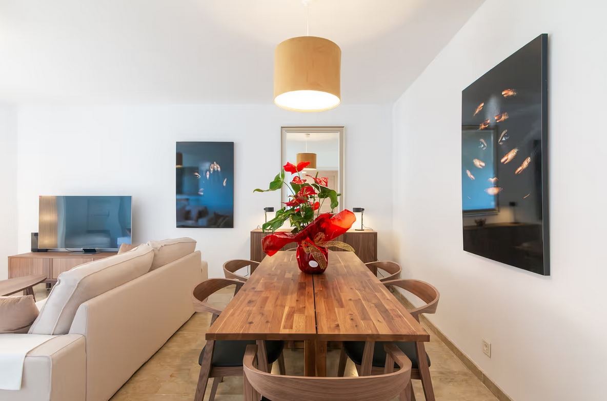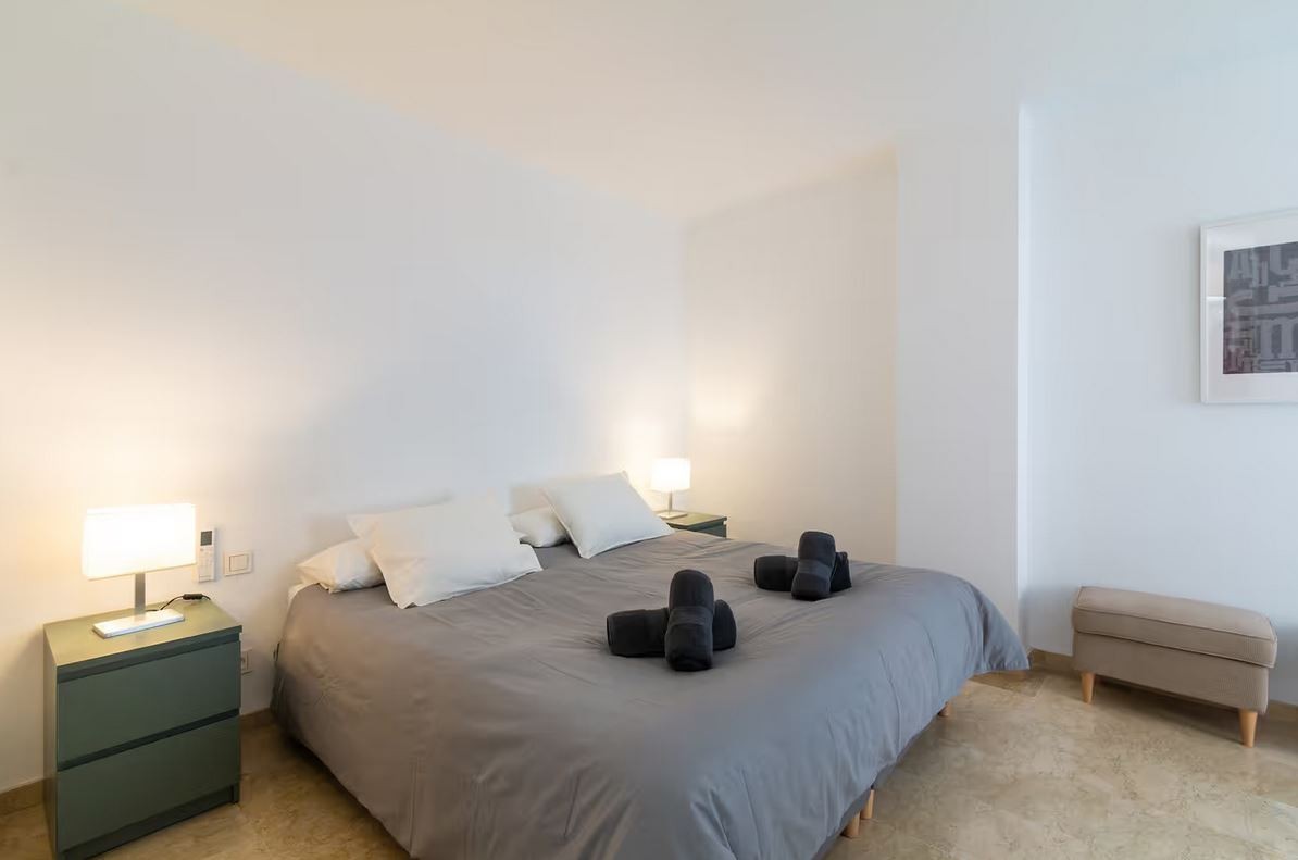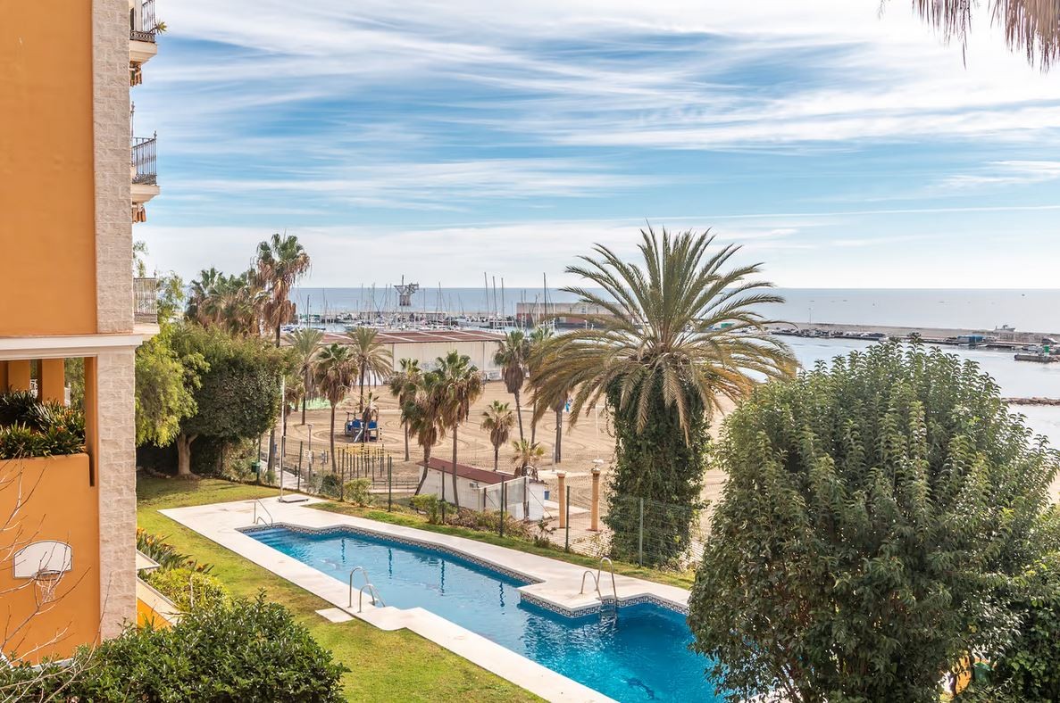 The apartment is located in Marbella and overlooks the Mediterranean Sea. The six-story property comprises a living room, a fully equipped kitchen, three bedrooms, and two bathrooms. Additional amenities include high-speed Wi-Fi (suitable for video calls) with a dedicated workspace for video calls, a smart TV with streaming services, air conditioning, a fan, a washing machine, and a dryer. A cot and highchair are also provided.