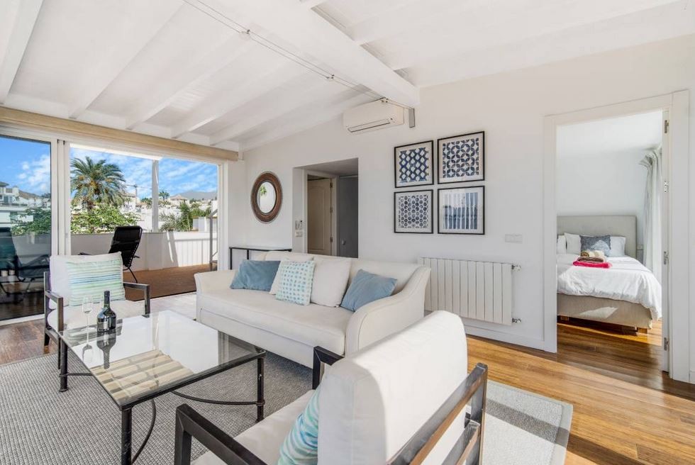 Just steps from the beautiful sandy beach of Casablanca and located in the heart of Marbella's prestigious Golden Mile, this is an unparalleled three-bedroom townhouse accommodating up to seven guests.